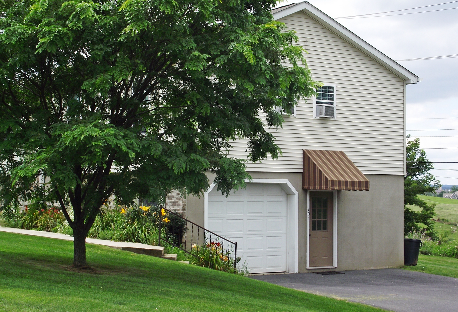 This updated duplex, offering a spacious three bedroom and cozy one bedroom floor plan, is located in a quiet residential area with a serene countryside view.