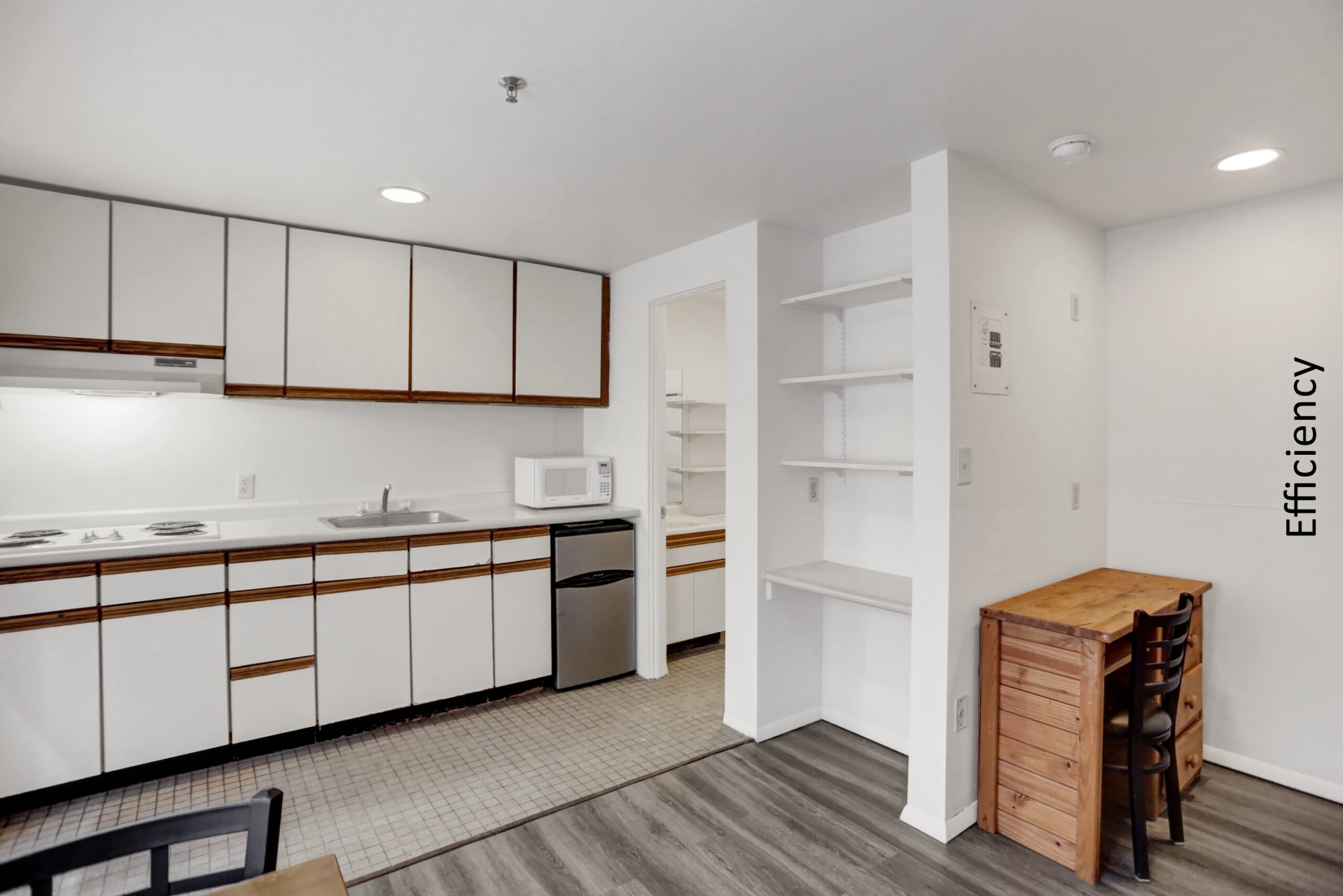Located across from campus on College Avenue, this building features furnished single rooms, efficiencies, and a one bedroom apartment.  The single rooms include electric and share two full bathrooms and one kitchen.  Each efficiency as well as the one bedroom apartment have private entries.