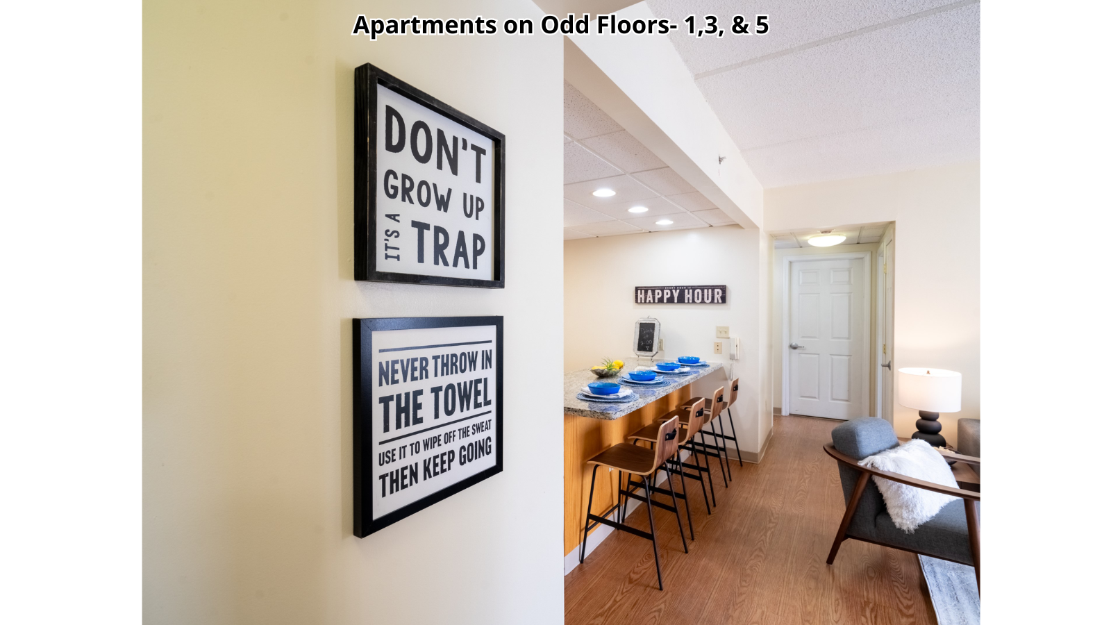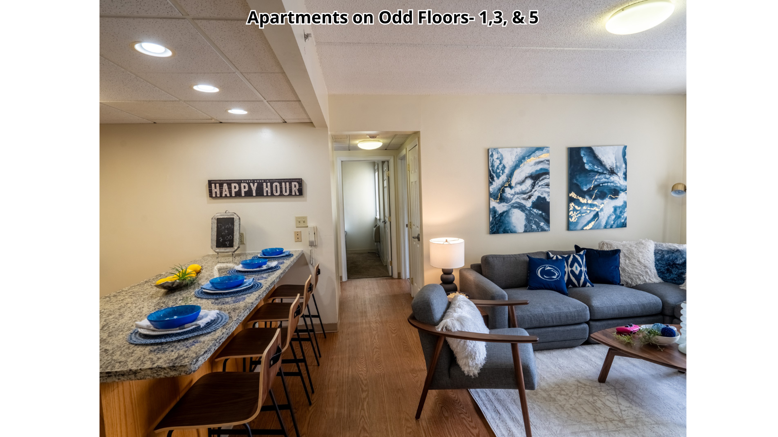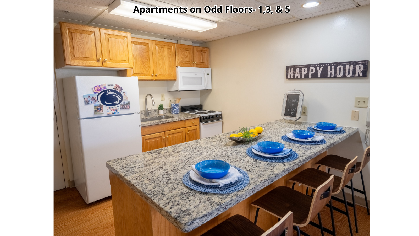 Bryce Jordan Tower is a condominium property with individually-owned units. Interior features in each unit may vary.