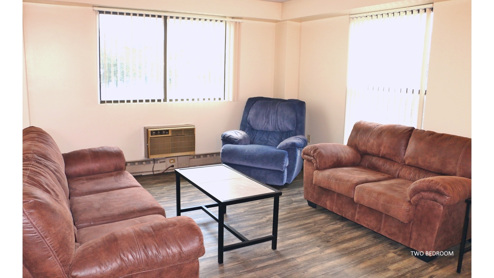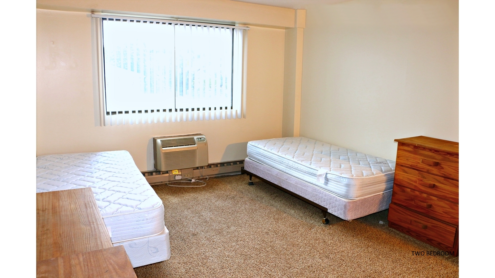 The Hetzel Plaza building is located across the street from campus and features furnished one and two bedroom apartments with open concept floor plans.  Amenities include air conditioning, dishwasher, and on-site laundry.