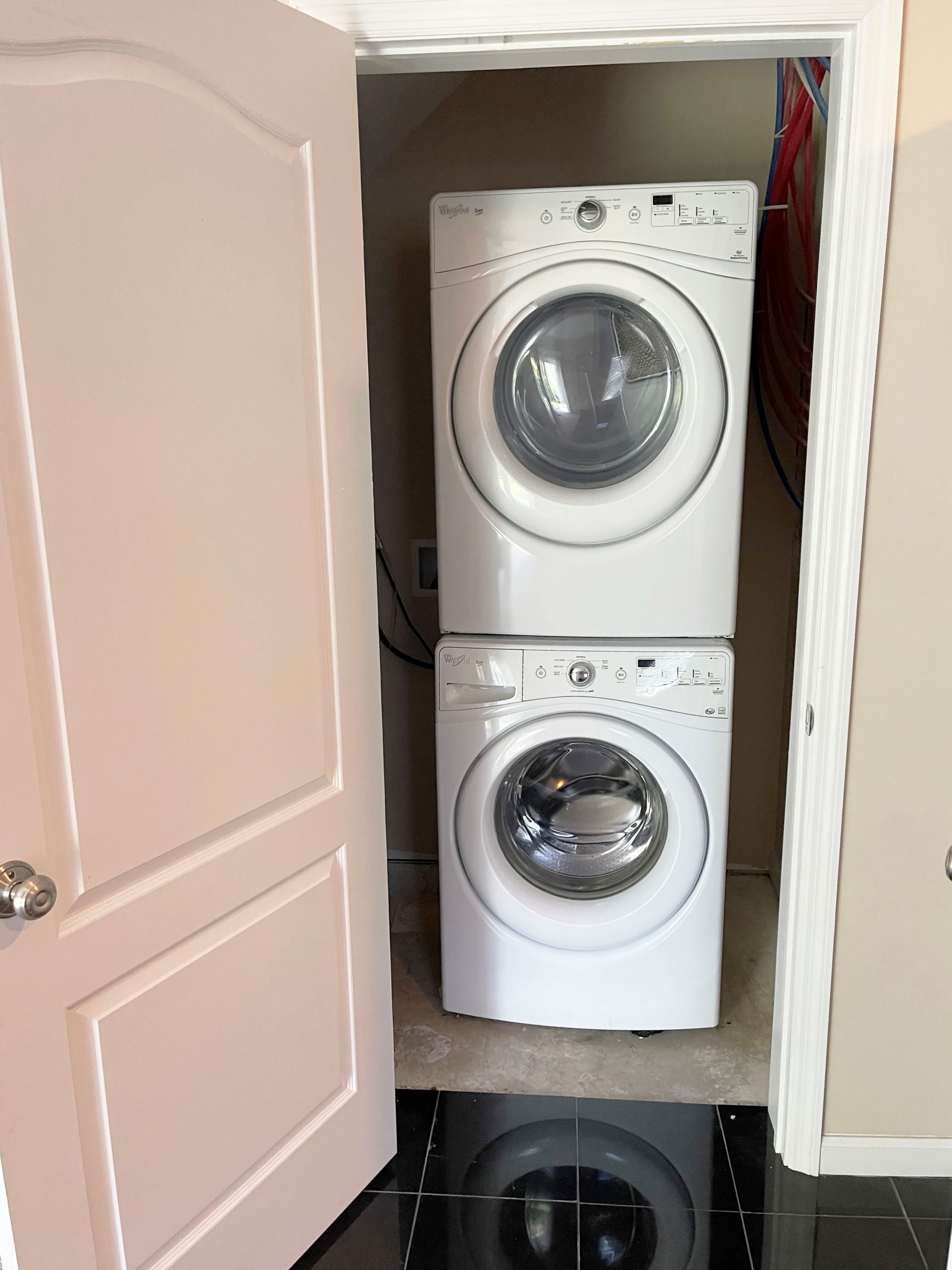 - Stackable washer/dryer included