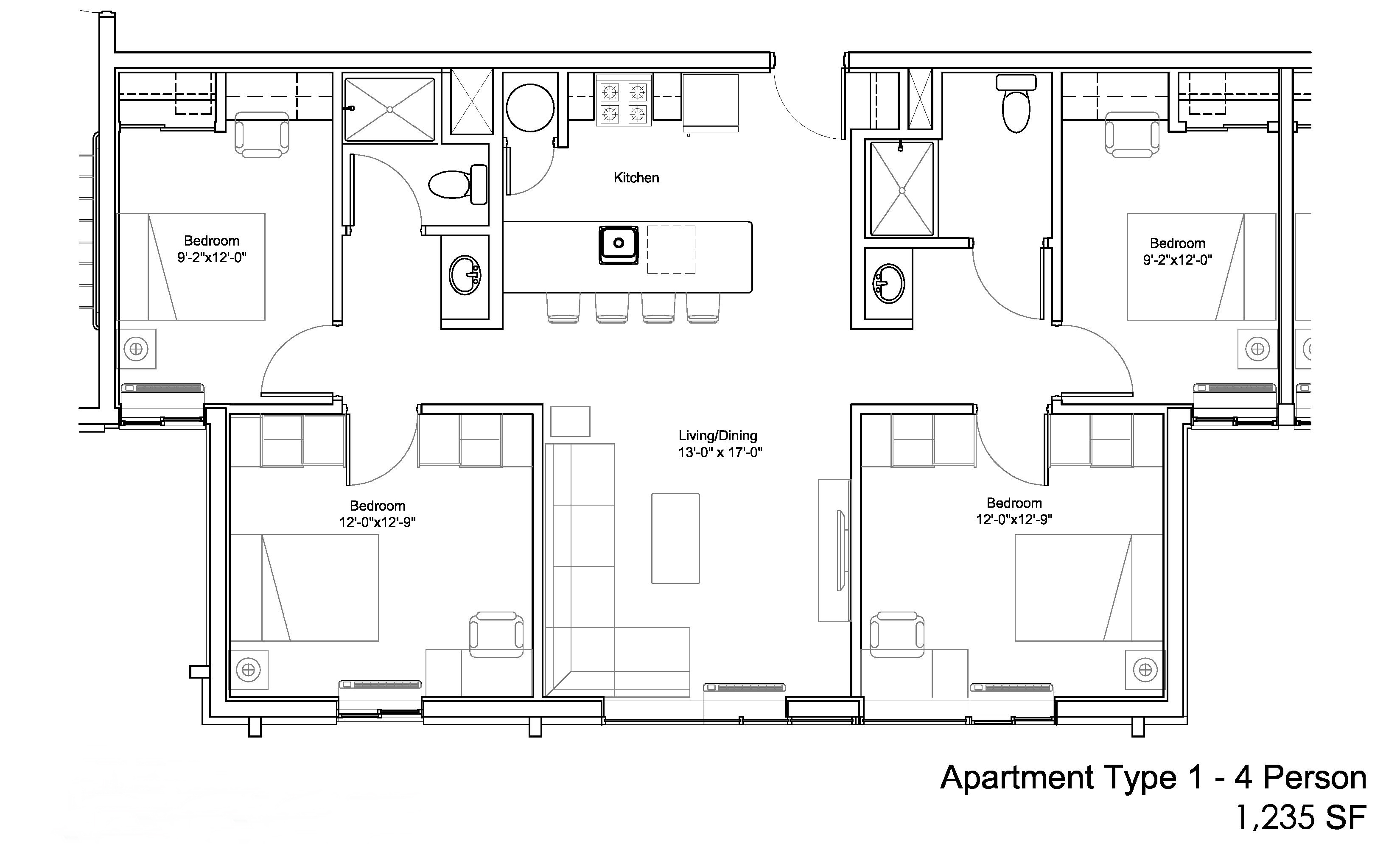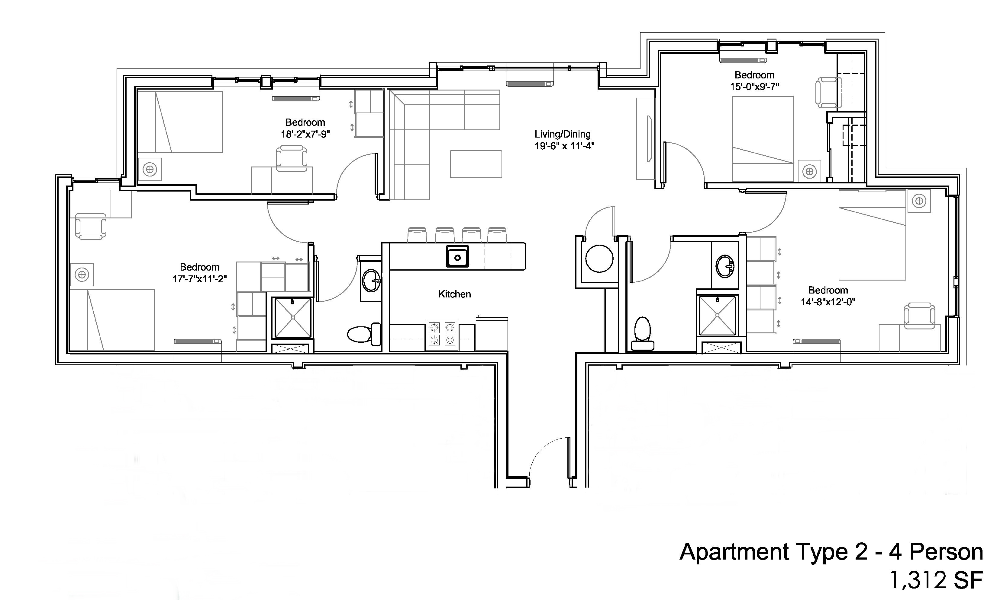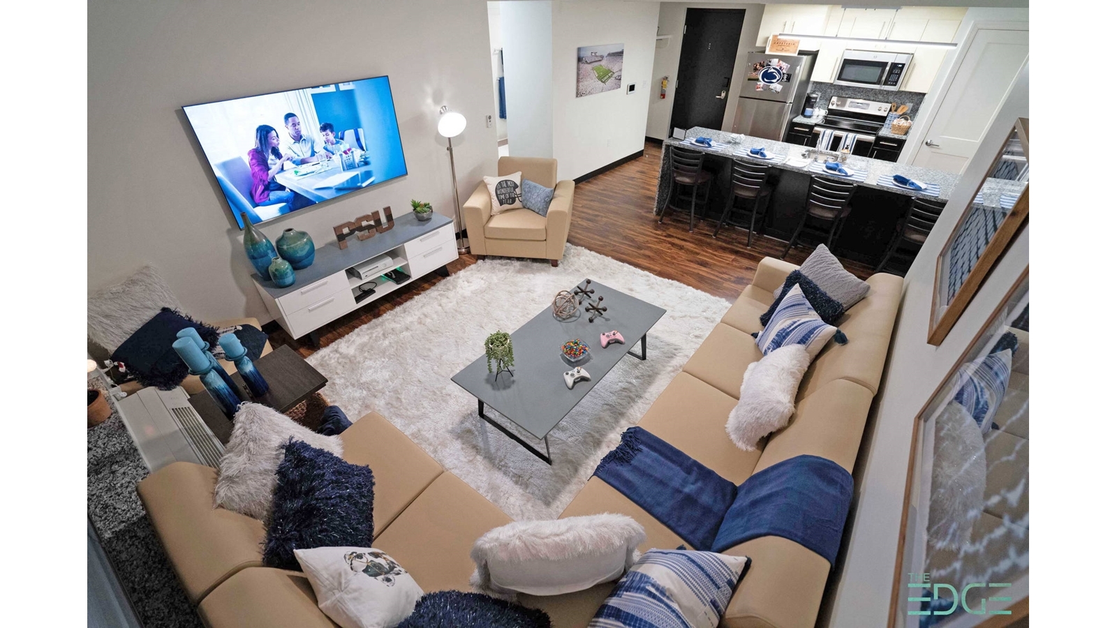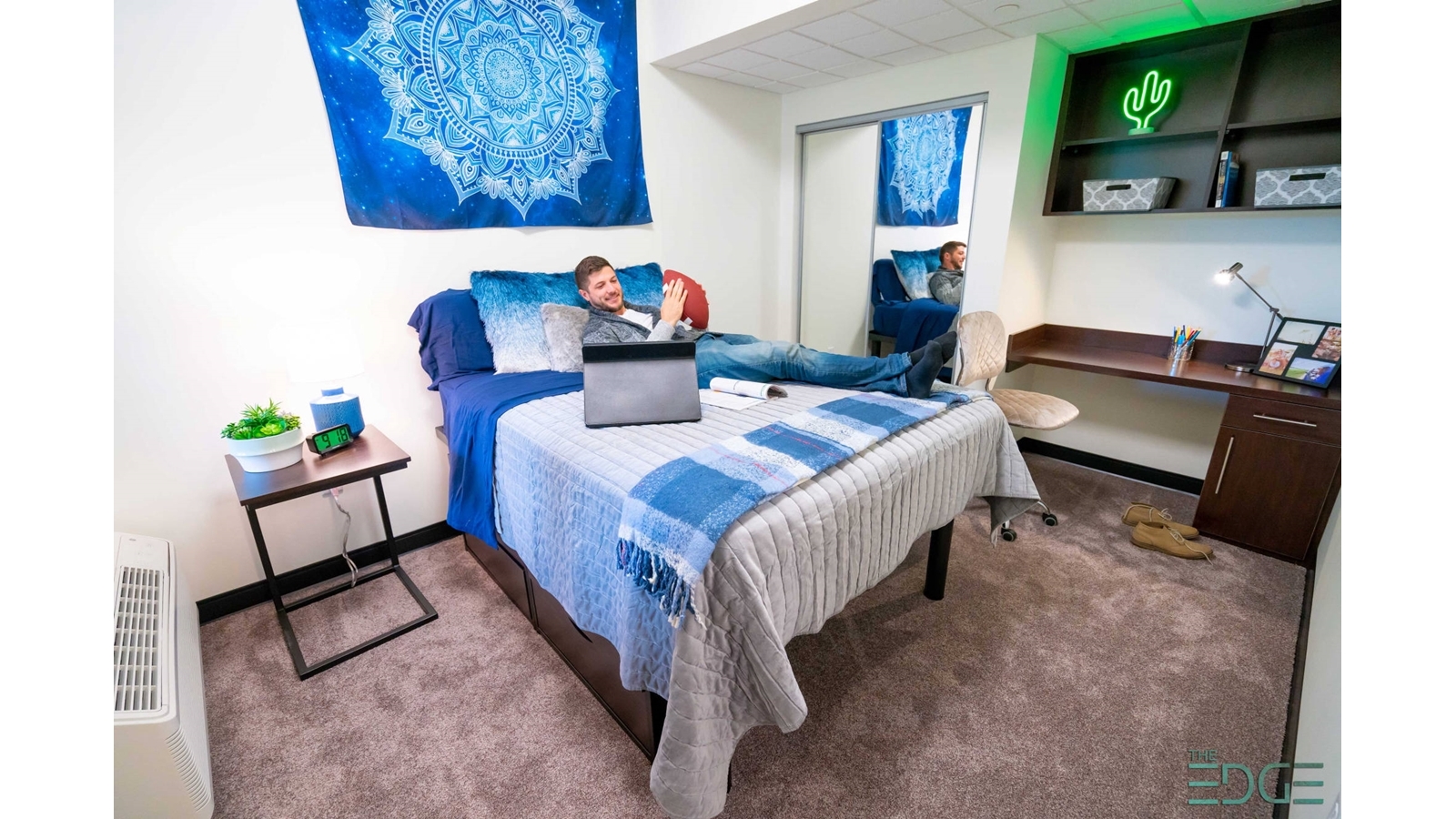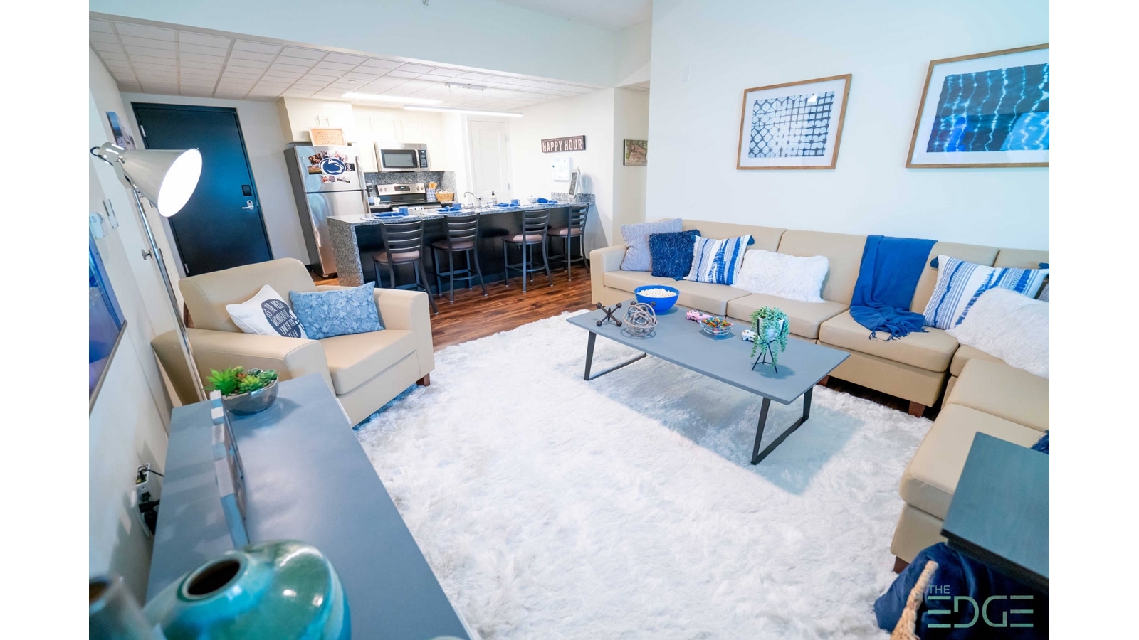 The Edge is a luxurious contemporary building with four bedroom, two bathroom apartments that can be furnished for four, five*, or six* residents. Conveniently located in the heart of downtown just one block from PSU campus, The Edge has been designed with premium finishes, a large fitness center, multiple study lounges, and a lobby lounge. All utilities except cable/TV are included in the rent.